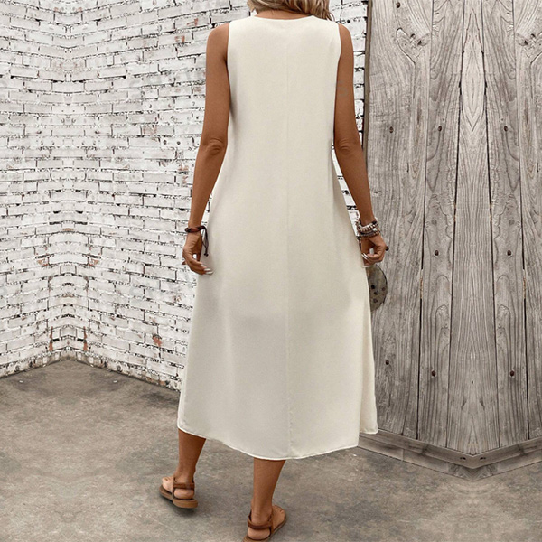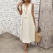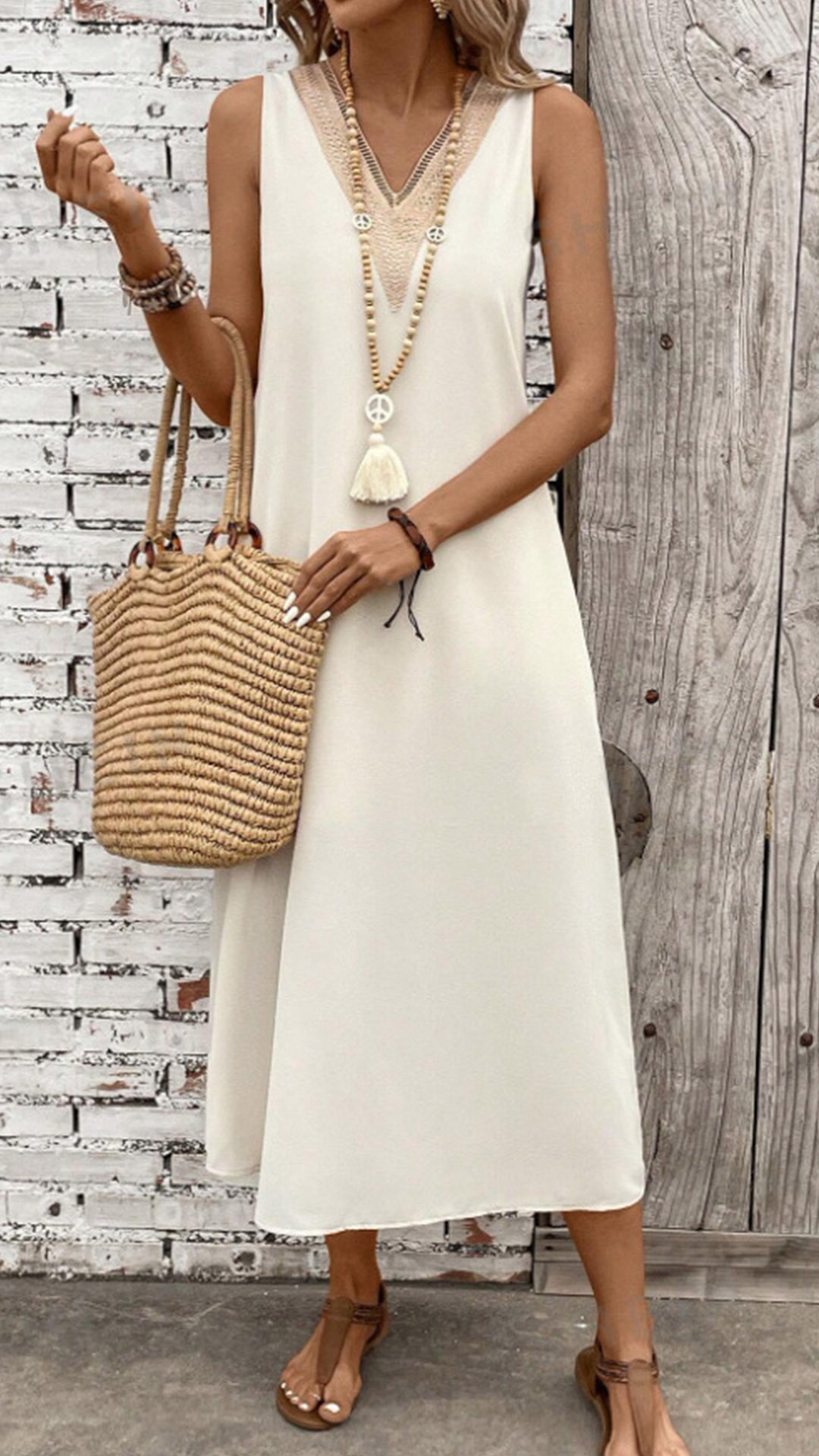 Casual Lace Spliced V-neck Sleeveless Midi Dress