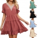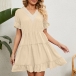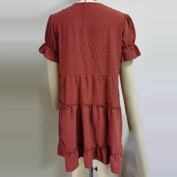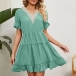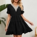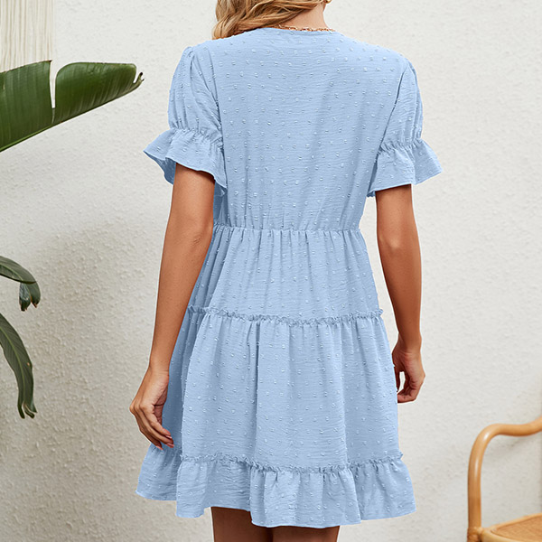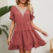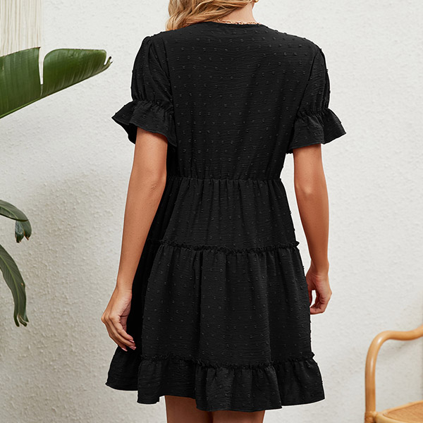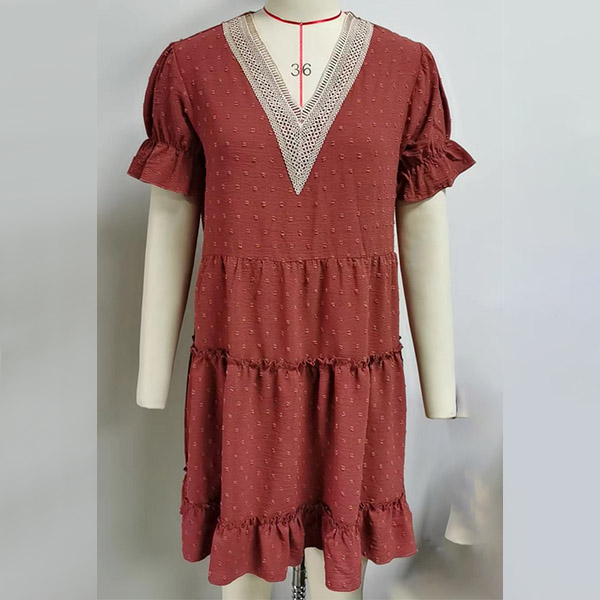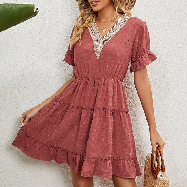 Casual Lace Spliced V-neck Swiss-dot Tiered Dress