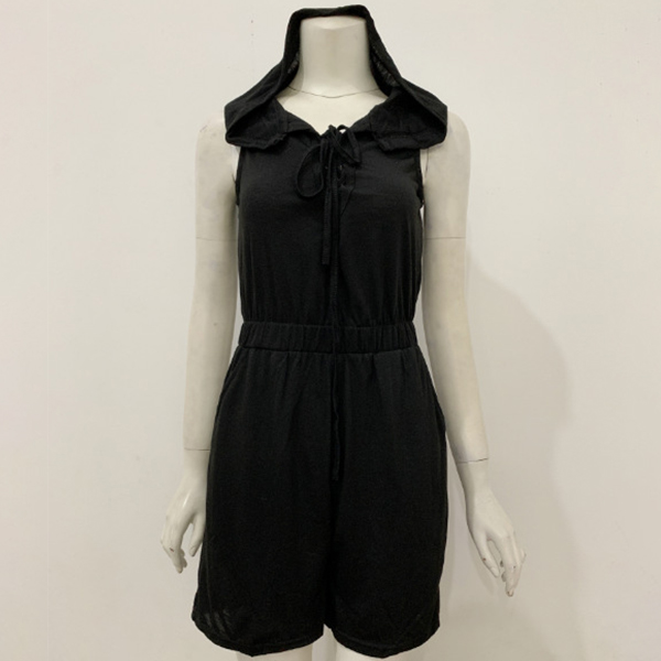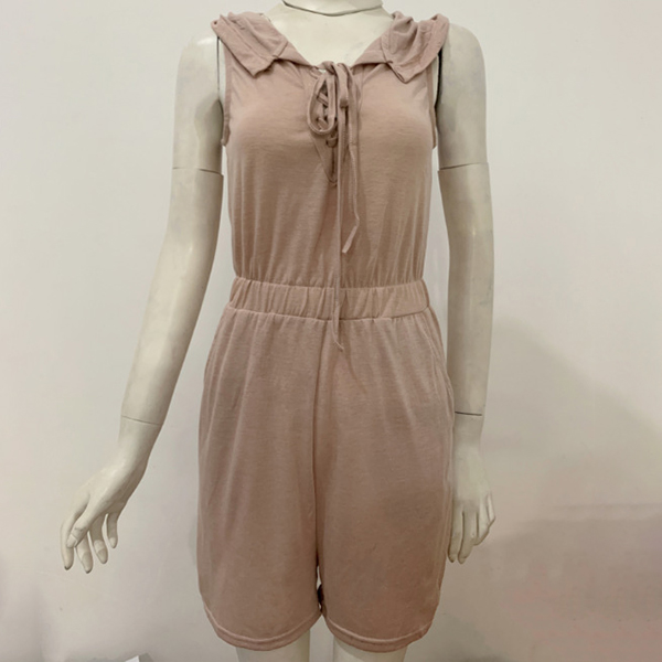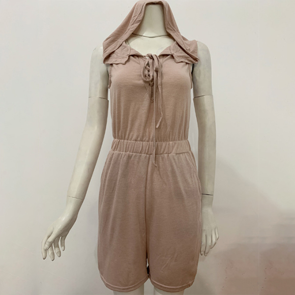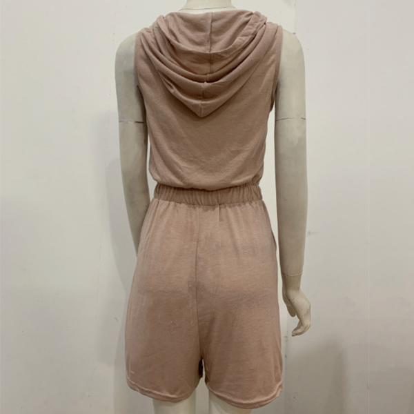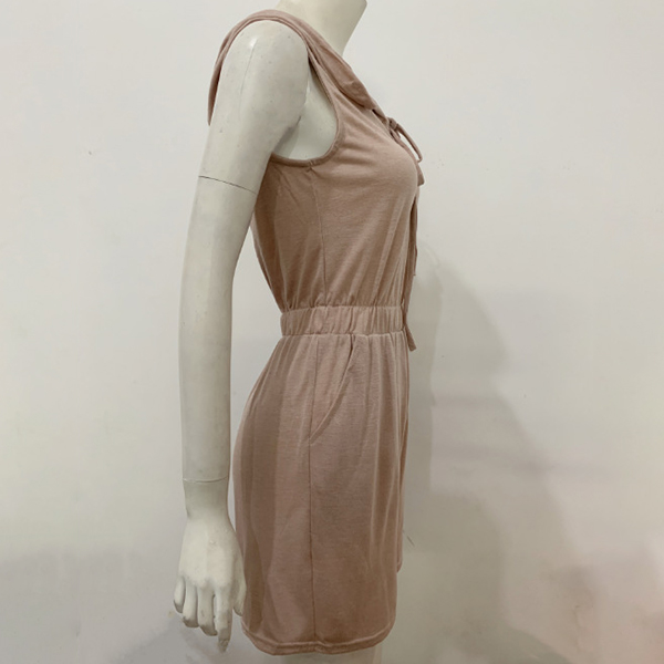 Casual Lace-up Sleeveless Hooded Romper