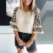 With round neck, elbow sleeve with tiered and leoaprd printed, loose slihoutte, this casual shirt is perfect for every day wear.