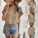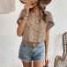 Casual Leopard Printed Round Neck Short Sleeve Shirt