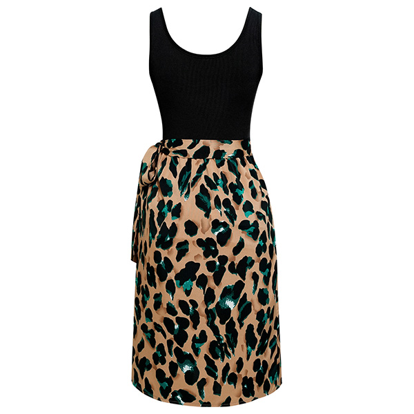 How about this casual dress? It has a black racerback bodice, leopard printed skirt and it comes with a self-tie at the waist. It is perfect for casual days or you can even dress it up with some accessories.