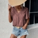 Casual Leopard Printed V-neck Short Sleeve Shirt
