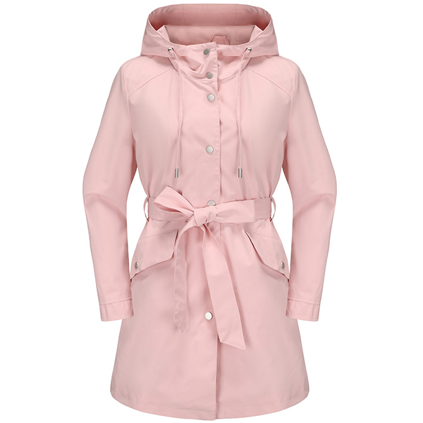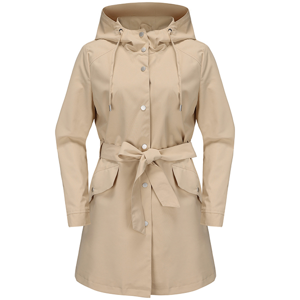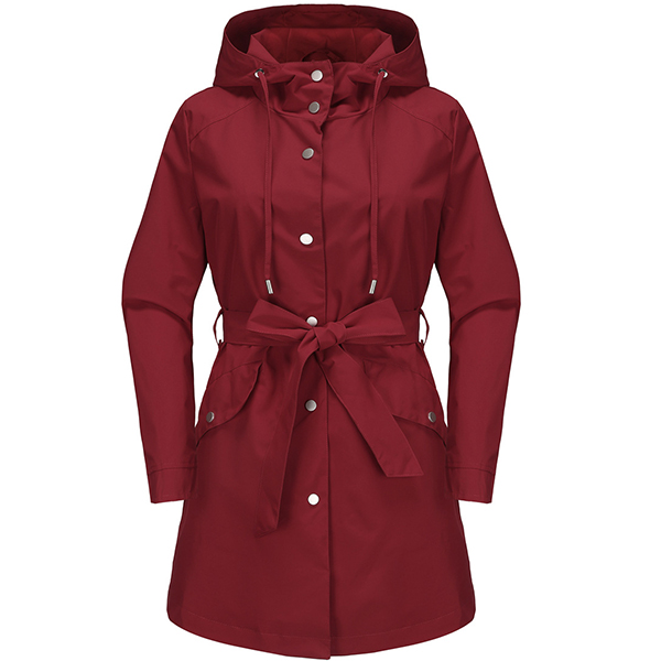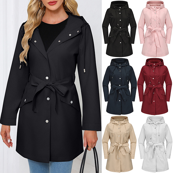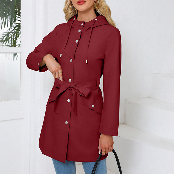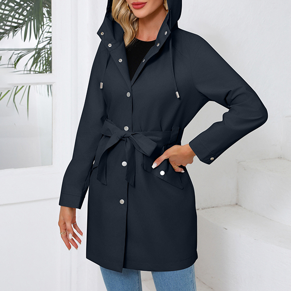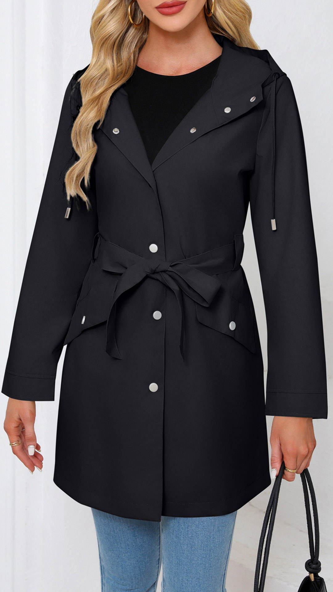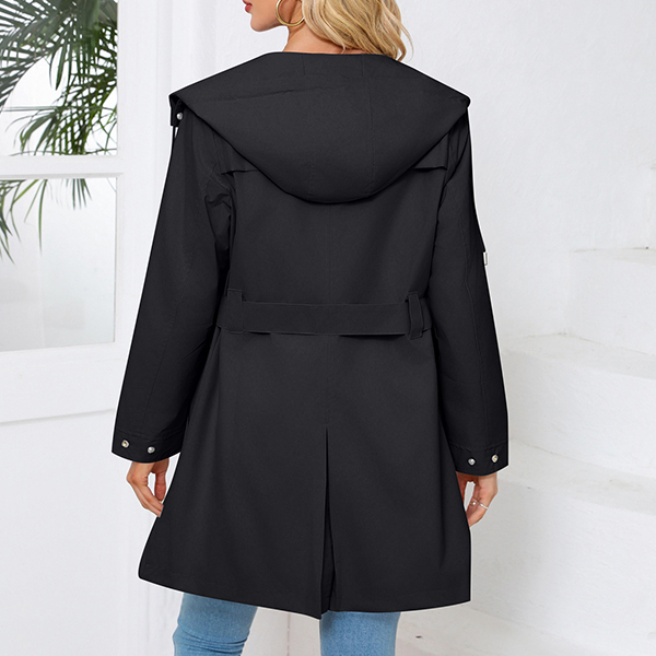 Casual Lightweight Hooded Water-Resistant Jacket with Belt- Trench Coat for Women