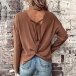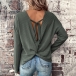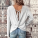 Casual Long Sleeve Back Knot Backless Texture Shirt
