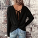 This casual shirt features long sleeves, crew neck, a back knot detail, and a backless design with a textured fabric, creating a trendy and stylish look. Pair it with jeans or shorts for a relaxed and stylish ensemble. Multi-colors avabile.