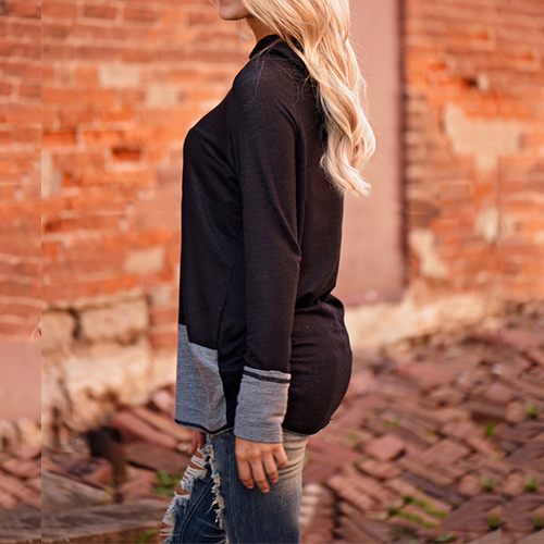 contrast color in the cuff and hemline creates interest and bring different visual impacts to people,by