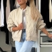 This casual jacket features long sleeves and a front button closure, creating a comfortable and stylish outerwear piece. The quilted design adds texture and warmth, making it perfect for this season. It is versatile and can be styled in various ways for a casual and relaxed look.
