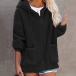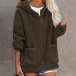 Casual Long Sleeve Patch Pockets Drawstring Hooded Plush Jacket