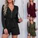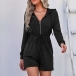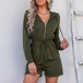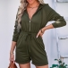 Casual Long Sleeve Zipper Drawstring Hooded Romper