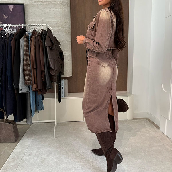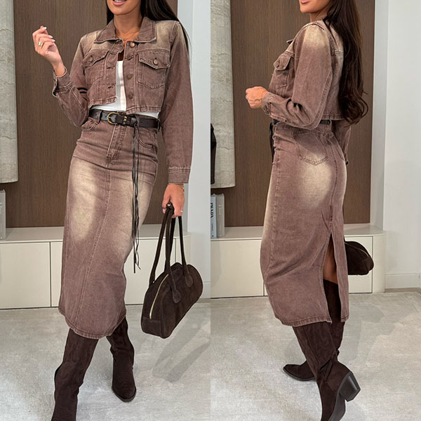 Casual Loose Denim Jacket Knee-Length Skirt Set