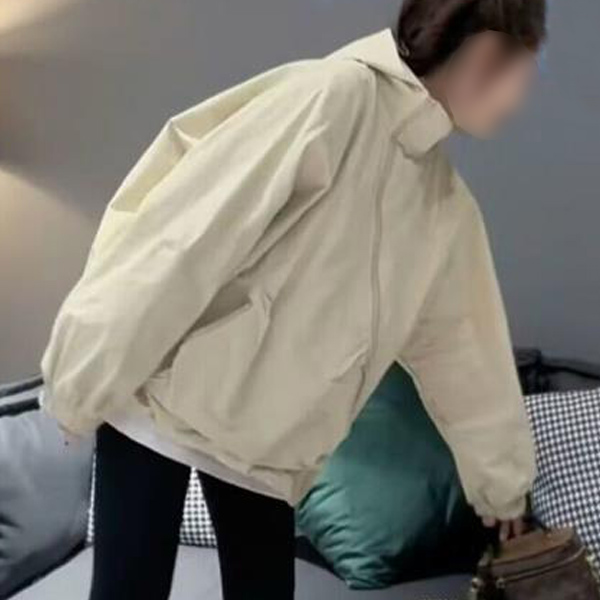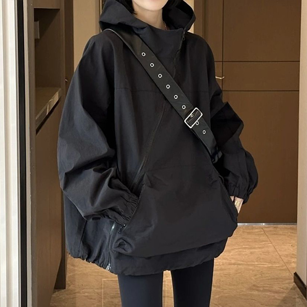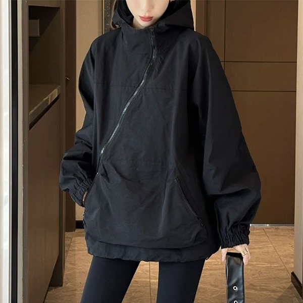 Casual Loose Hooded Jacket with Diagonal Zipper