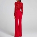 Casual Loose Long Sleeve Belted Flared Jumpsuit