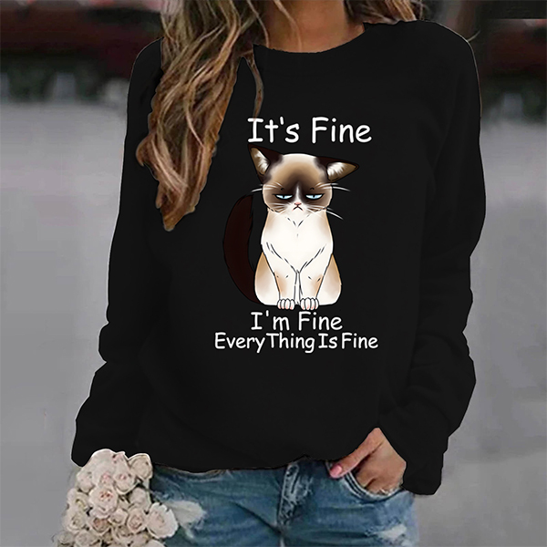 Casual Loose Long-Sleeved Top Printed Round Neck Pullover