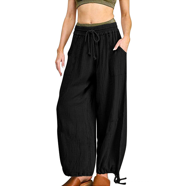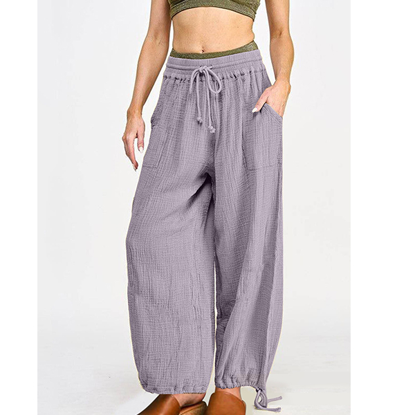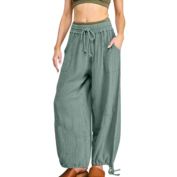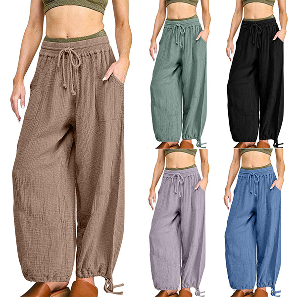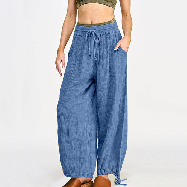 Casual Loose Wide-Leg Trousers with Drawstring and Pockets
