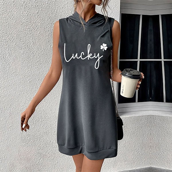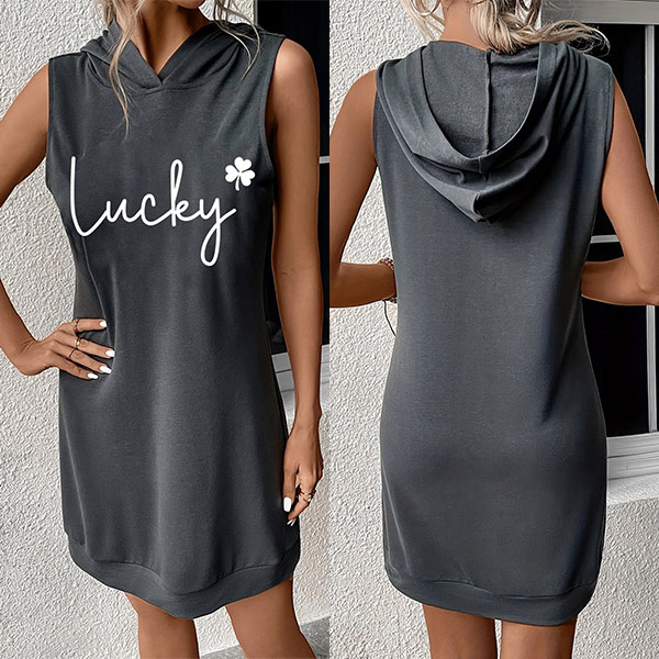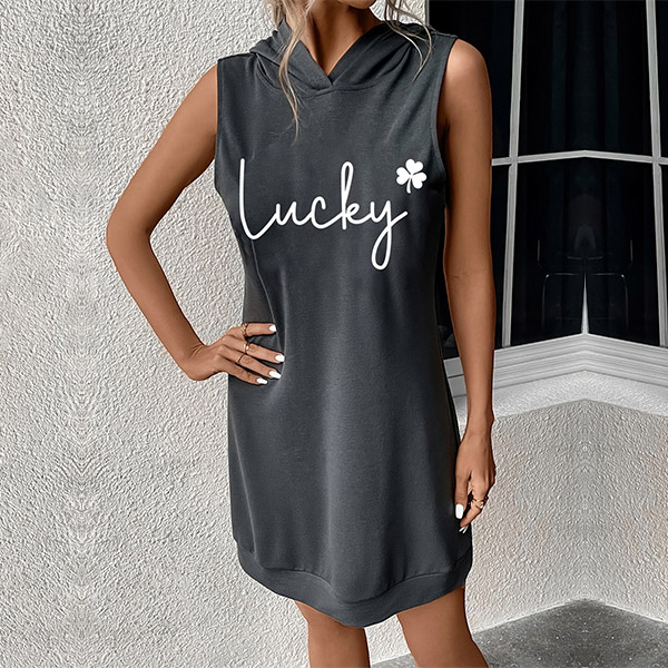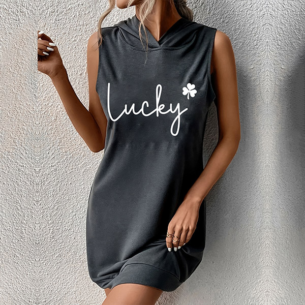 Casual Lucky-Letter Printed Sleeveless Hooded Dress