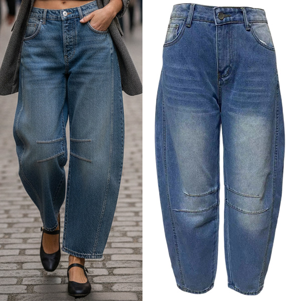 These pants feature a mid-rise waist and a sculptural leg. Vintage vibes. 100% style. Combined with an old-washed denim finish, offering a versatile and effortlessly cool addition to your casual wardrobe.