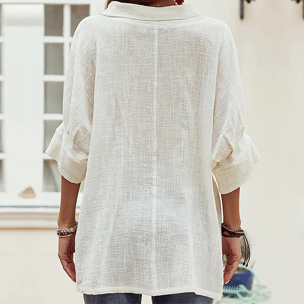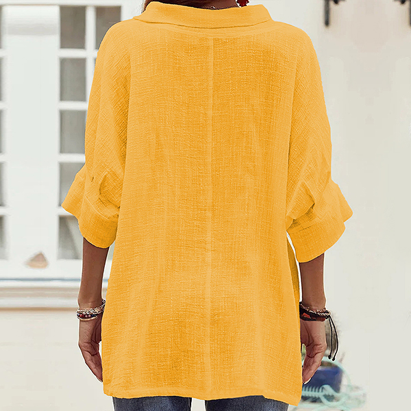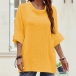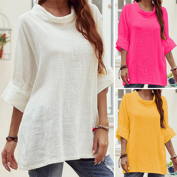 Casual Mock Neck Elbow Sleeve Loose Shirt