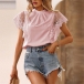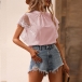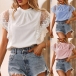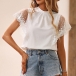 Casual Mock Neck Lace Spliced Short Sleeve Shirt