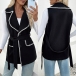 Add refined charm to your wardrobe with this Casual Notch Lapel Vest. This sophisticated layering piece features elegant white whipstitch trim that delicately outlines the edges, creating a crisp, tailored look with artisanal detail. The classic notch lapel design offers timeless appeal while maintaining a relaxed vibe perfect for everyday wear. You could pair with rolled-sleeve shirts and jeans for casual settings .