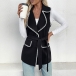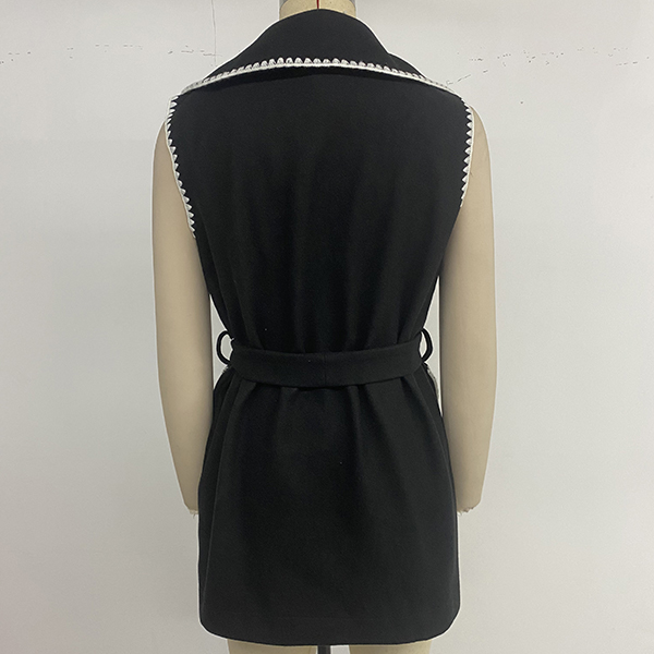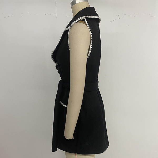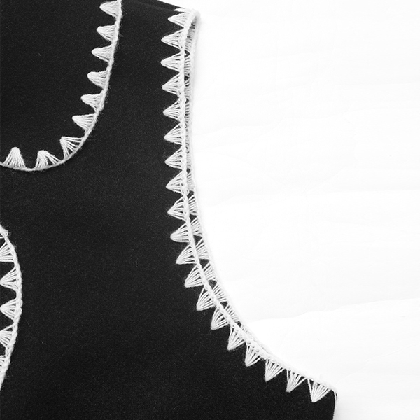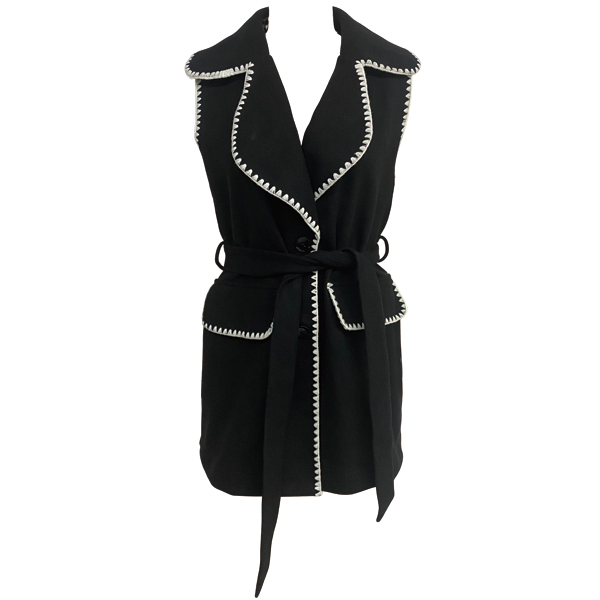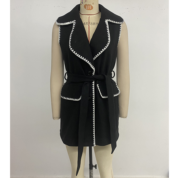 Casual Notch Lapel Vest with White Whipstitch Trim along the Edges