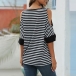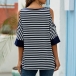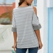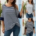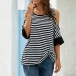 Casual Off-shoulder Half Sleeve Twisted Hem Striped T-shirt