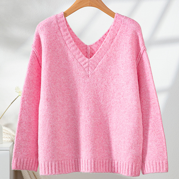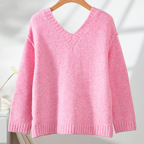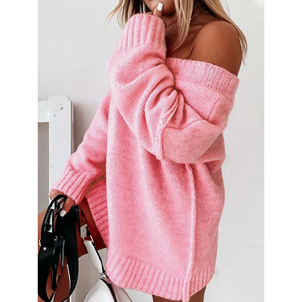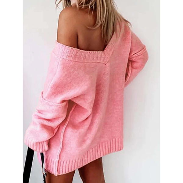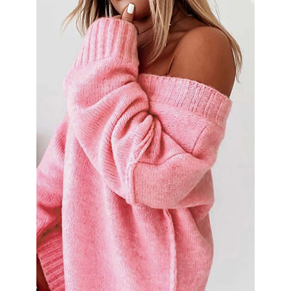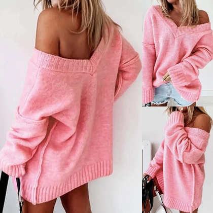 Casual Off-Shoulder V-Neck Pullover Sweater