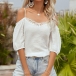 Casual Off-the-shoulder Lace Spliced Short Sleeve Cami Shirt