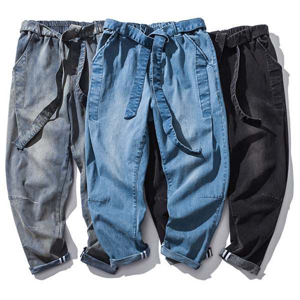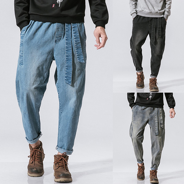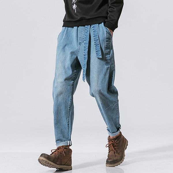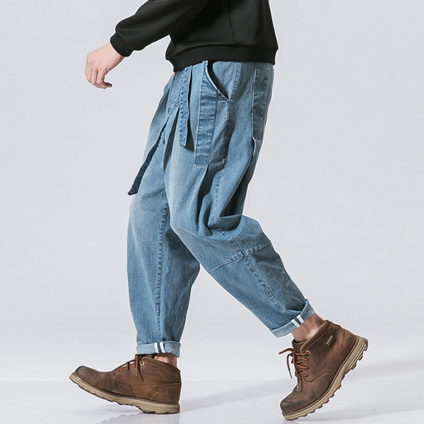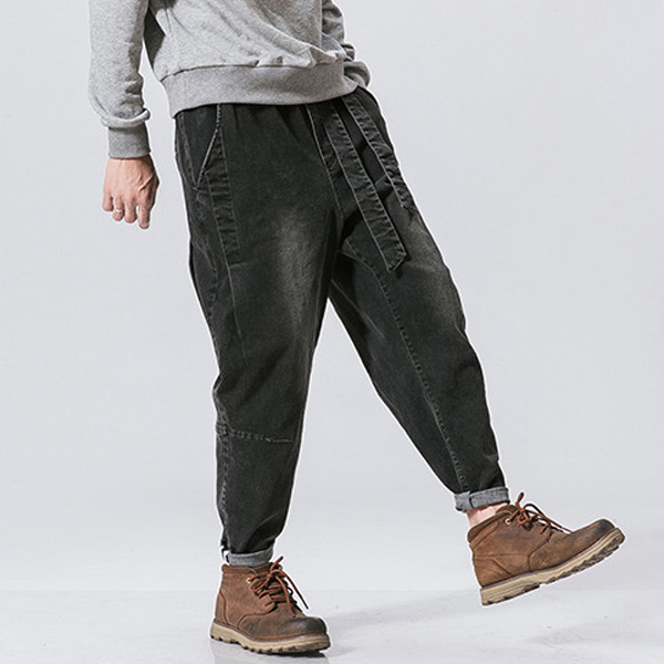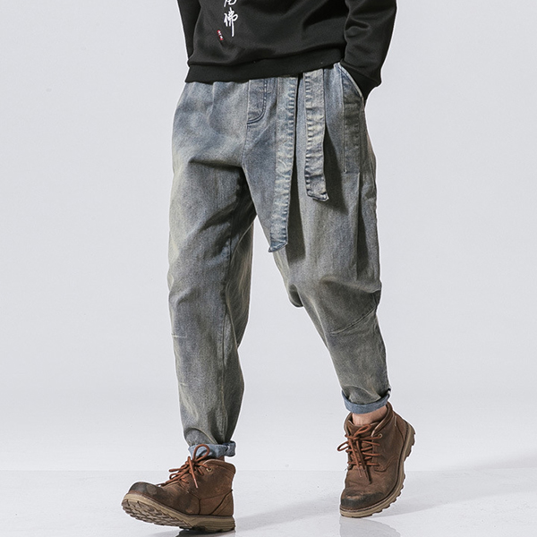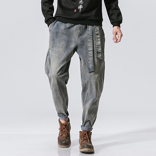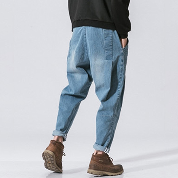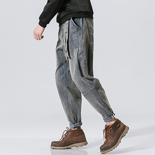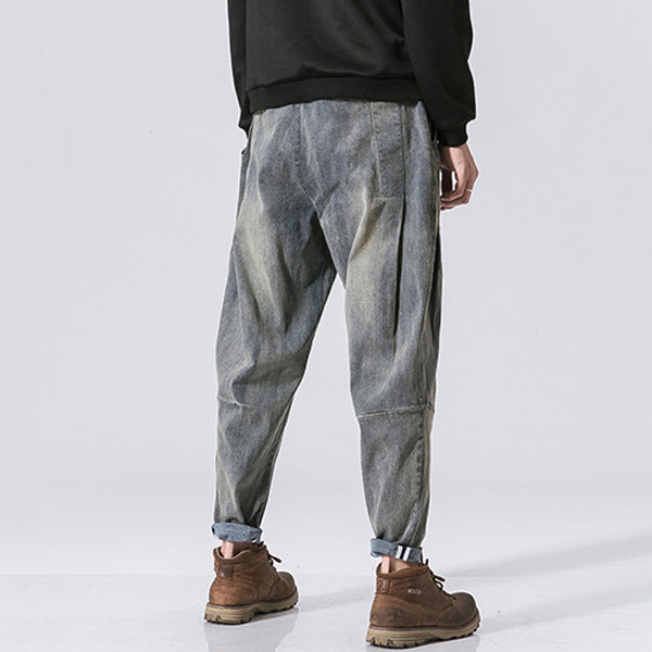 Casual Old-washed Denim Loose Jeans for Men