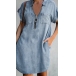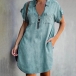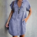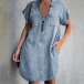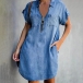 Casual Old-washed Half-zipper Short Sleeve Denim Dress