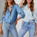Casual Old-washed Long Sleeve Buttoned Denim Shirt