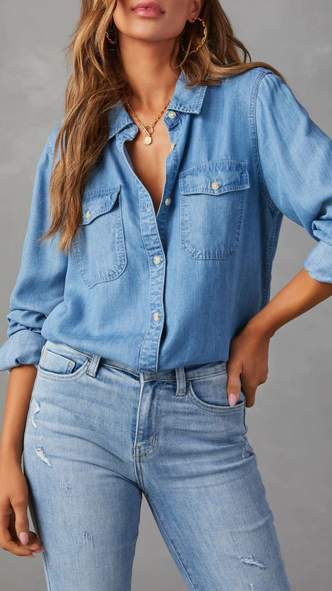This denim shirt is the perfect blend of casual and timeless style. The old-washed denim gives it a vintage and worn-in look, adding a touch of character and charm. Light blue and blue, which one do you like?