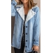 Casual Old-washed Notch Lapel Long Sleeve Plush Lined Denim Jacket