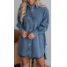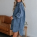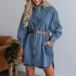 Casual Old-washed Stand Collar Long Sleeve High-low Hemline Denim Shirt Dress