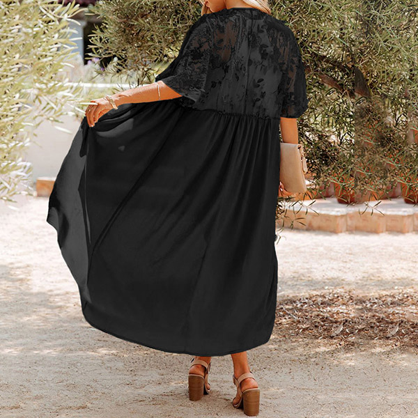 Casual Oversize Lace Spliced Thin Belt-tie Long Cardigan