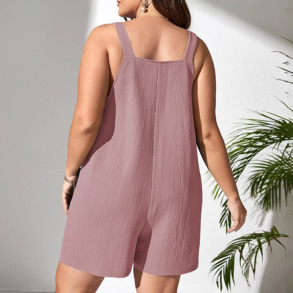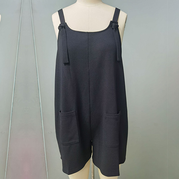 Casual Patch Pockets Self-tie Shoulder Strap Loose Romper