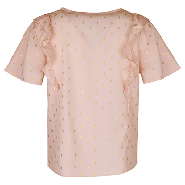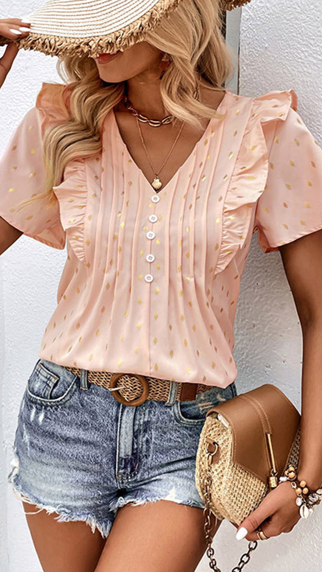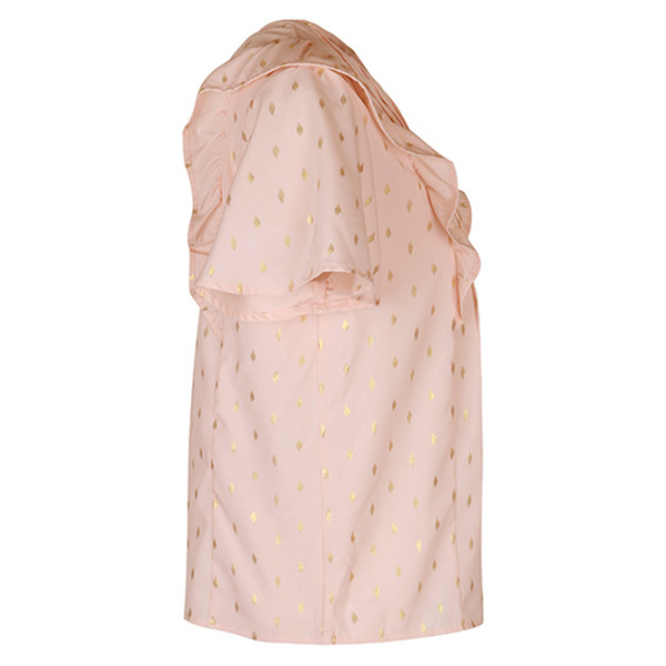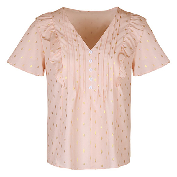 Casual Patchwork Foil Print Ruffled Short Sleeve Shirt