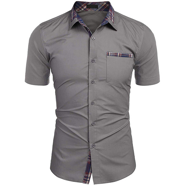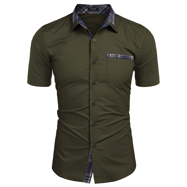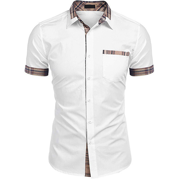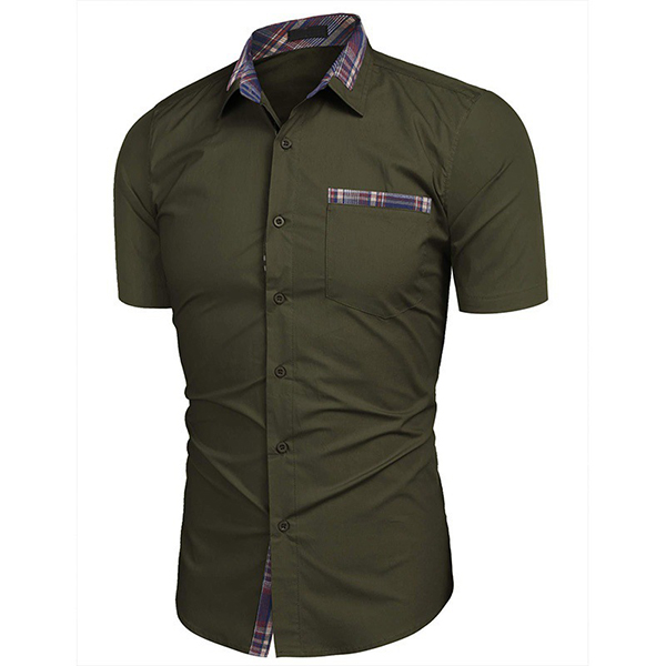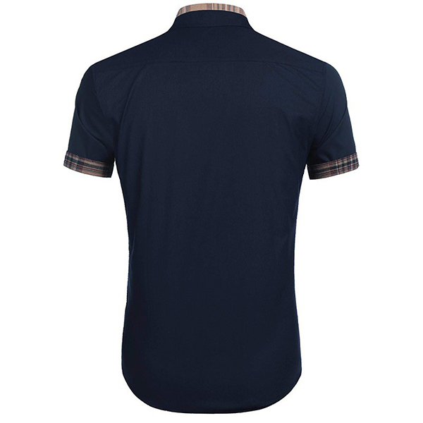 Casual Plaid Spliced Stand Collar Short Sleeve Shirt for Men