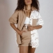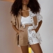 Casual Printed Contrast Color Two-piece Set Consist of Stand Collar Blouse and Shorts