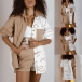 Looking for a casual and trendy two-piece set? This printed contrast color set is perfect! It includes a stand collar blouse and shorts, both in a comfortable and stylish material.