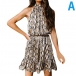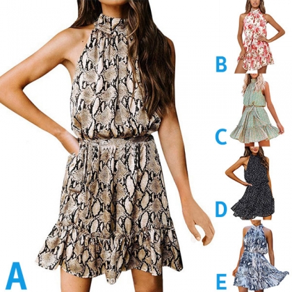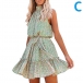 Casual Printed Sleeveless Self-tie Tiered Halter Dress
