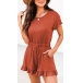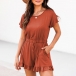 Casual Romper with Ruffle Hemline and Side Slanted Pockets Waist Drawstring