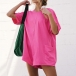 Casual Round Neck Backless Short Sleeve Patch Pockets Loose Romper