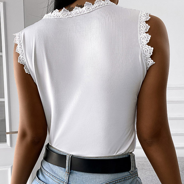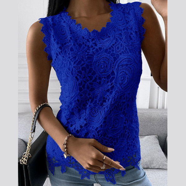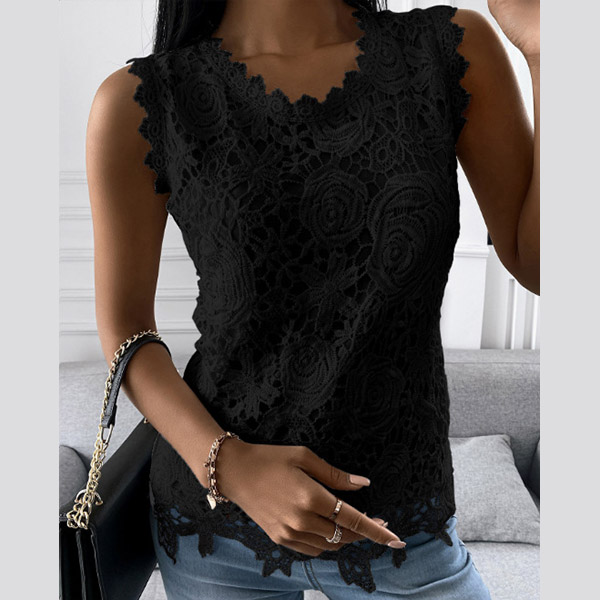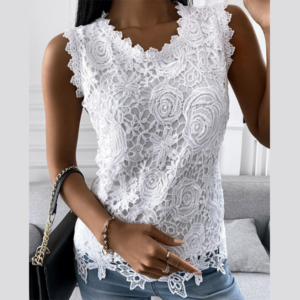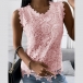 Casual Round Neck Crochet Lace Sleeveless Shirt