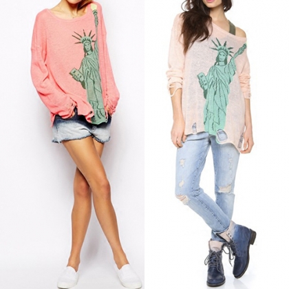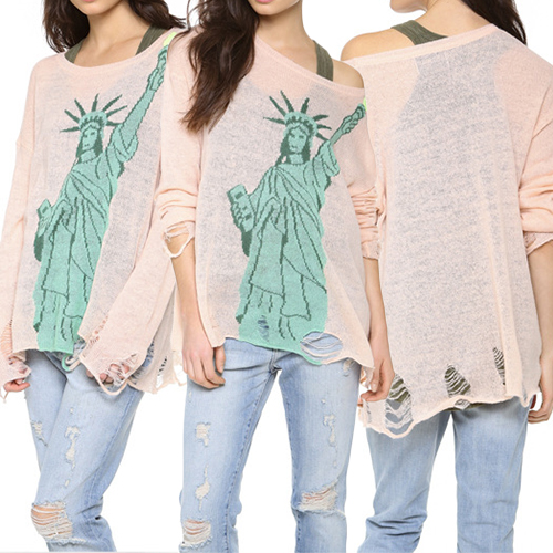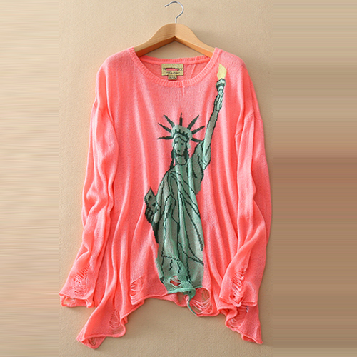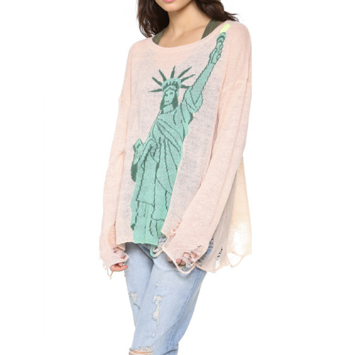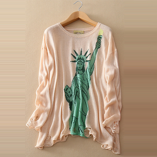Long sleeve, round neck, hole hem design, with picture printed, loose style, this sweater is really