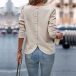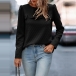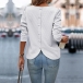 Casual Round Neck Ruffled Long Sleeve Back Buttoned Shirt