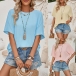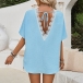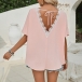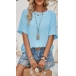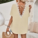 Casual Round Neck Short Sleeve Lace Spliced Backless Shirt