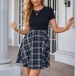 Casual Round Neck Short Sleeve Plaid Printed Mini Dress