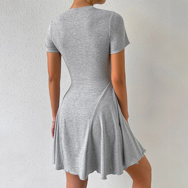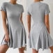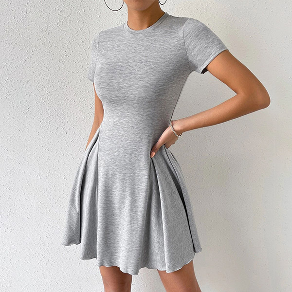 Casual Round Neck Short Sleeve Pleated Gray Dress