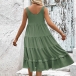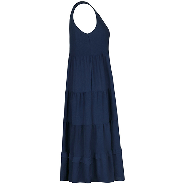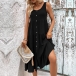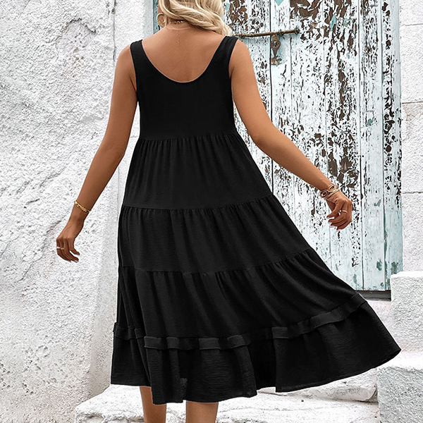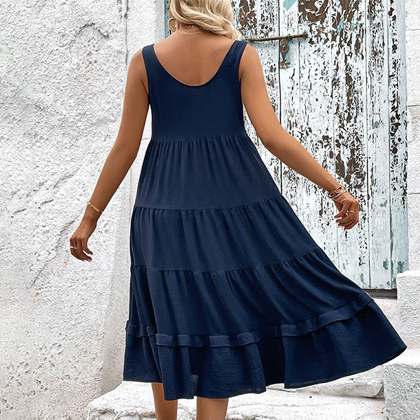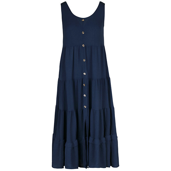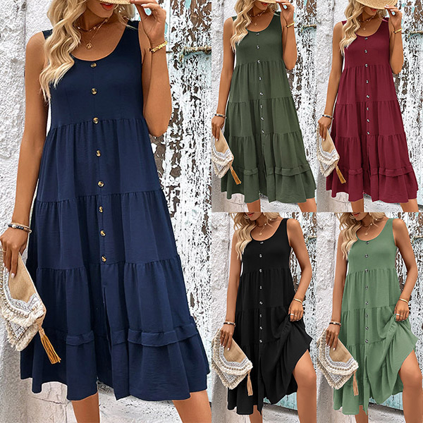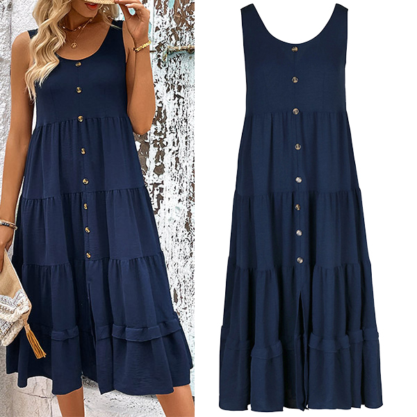 Casual Round Neck Sleeveless Front Button Tiered Dress